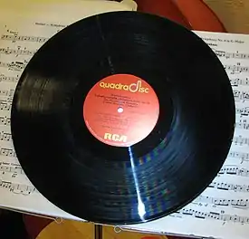 En el sistema CD-4, el audio cuadrafónico se dividió en canales izquierdo y derecho, grabados ortogonalmente en el plano vertical del surco del disco, que es el caso del estéreo normal. La pista de grabación de CD-4 es más amplia que una pista estéreo convencional, por lo que el tiempo de reproducción es menor que el de una grabación estéreo convencional.