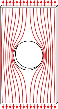 Las discontinuidades geométricas o la falta de suavidad de una geometría actúan como concentradores de tensión. Los extremos de las fisuras, las esquinas agudas, los agujeros y los cambios de sección transversal son ejemplos de concentradores de tensiones. Las tensiones locales altas pueden producir un fallo más temprano de un elemento resistente, por esa razón los ingenieros diseñan las geometrías para minimizar la concentración de tensiones.