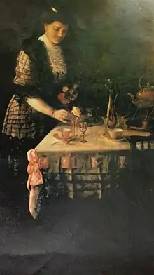 En 1906 presenta 3 obras en la Exposición Nacional de Bellas Artes: Una Manola, Una Chula y Estudio[2] y obtiene la Mención Honorífica. Repite participación en la Exposición de 1908 con dos obras: Los Últimos Toques y Coquetería (esta última también conocida como La Gitana).[3]