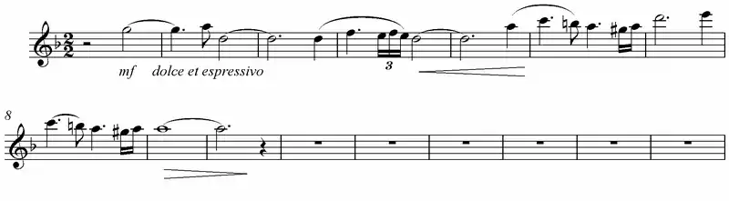 La primera aparición notable de las cuerdas es para anunciar el segundo tema. Algo notable en este movimiento es que la cadenza se usa como parte del desarrollo.