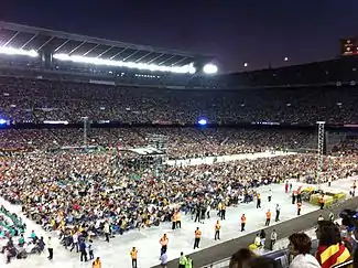 Uno de los momentos más destacados fue cuando se realizó un mosaico que se desplegó en las gradas del campo mientras sonaba el himno dels Segadors.[17]