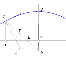 - Colocar el punto G en la línea perpendicular a (BH) y pasando por F de modo que FG=EA.