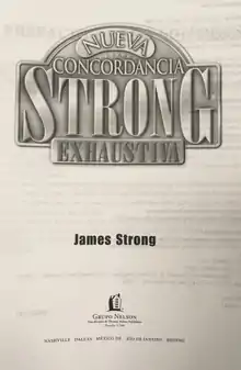 La Concordancia de Strong, también conocida como Concordancia exhaustiva de la Biblia de James Strong o, de manera informal, como "Números de Strong", es un listado de todas las palabras presentes en el texto de la Biblia (se basa en la Versión Autorizada inglesa, o "del rey Jacobo") con su correspondiente referencia por libro, capítulo y versículo, para permitir la referencia cruzada de cada una de ellas.[1] Fue recopilada bajo la dirección del profesor de teología del Seminario Teológico Drew, Dr. James Strong (1822–1894) y publicada por primera vez en 1890. El propósito de la Concordancia de Strong es proporcionar un índice palabra por palabra de las referencias bíblicas, lo que permite al lector localizar todas las apariciones de un término dado en la Biblia.[2] De esta forma, Strong ofrece un modo de verificación de traducción independiente y proporciona una función adicional para una mejor comprensión del texto.[3]