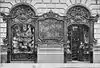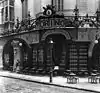 - Los estudios fotográficos utilizaban reclamos publicitarios para atraer a los clientes, como colocar un rótulo en la fachada -incluso luminoso, como hizo Gaspard-Félix Tournachon en París. El respeto hacia la propia obra de arte que era el edificio, produjo que se adoptara una solución de vitrales modernistas de colores, integrados en el ventanal junto con las esculturas de Eusebio Arnau (ref.:María de los Santos García Felguera).
