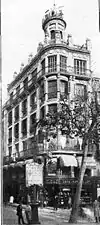 Mención | Salvador Vinyals i Sabaté | Casa Vicente Ferrer | Edificio encargado por el propietario de la tienda de farmacia, perfumería y droguería “Vicente Ferrer”, ganadora de una mención honorífica en la sección de establecimientos y comercios. La planta baja y el principal estaban dedicados al comercio y los cinco pisos restantes a vivienda de alquiler. Para lograr la máxima luminosidad en la parte comercial, la estructura de la fachada se basaba en grandes arcos a nivel del principal, descansando en grandes columnas que había en cada arista del edificio.[39] | ![]() Destruida | |