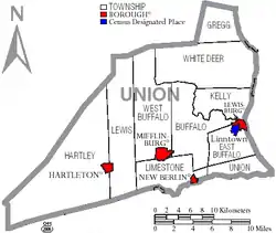Allenwood | Laurelton | Linntown | New Columbia | Vicksburg | West Milton