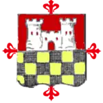 ![]() ![]() Armas de Villalonga: escudo cortado; parte superior, un castillo de plata, con dos torres, en campo encarnado: parte inferior; ajedrezado de oro y negro.[1] | ||