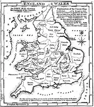 Condados históricos de Gales en un mapa de Inglaterra y Gales de 1824.
