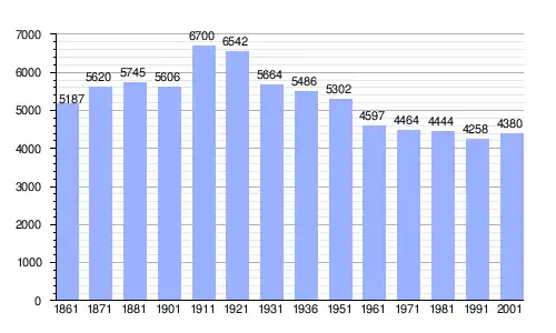 Gráfica de evolución demográfica de Condove entre 1861 y 2001 |