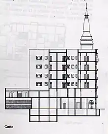 La planta baja, y los tres subsuelos están ocupados por la confitería, con su salón de fiestas, cocinas con planta de elaboración de productos, bodegas, fábrica de hielo, depósitos y taller mecánico. En los pisos superiores se distribuyen departamentos para rentar, en su torre, y en la ochava del quinto piso se hallan las oficinas para la administración del comercio.
