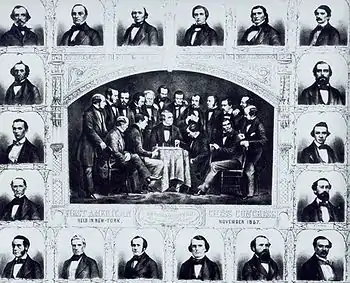 A la derecha se encuentra la litografía del 1º Congreso. Aparecen todos los miembros del Congreso, incluidos los que no jugaron en el Torneo Principal. En la fila superior: el Coronel Charles Mead (presidente), George Hammond, Frederic Perrin, Daniel Willard Fiske, Hiram Kennicott, y Hardman Philips Montgomery. Columna de la izquierda: Hubert Knott, Ludwig Paulsen, y William Allison. Fila inferior: Theodor Lichtenhein, James Thompson, Charles Henry Stanley, Alexander Beaufort Meek, Samuel Robert Calthrop y Napoleón Marache. Columna derecha: William James Fuller, Paul Morphy, y Benjamín Raphael.