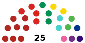 Grupos representados | 8 Morena 4 PT 3 PRI 2 PRD 2 NAT 2 PVEM 1 PAN 1 FPM 1 PES 1 PAC | |