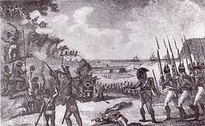 La mayor desgracia ocurrió cuando uno de los botes se volcó y treinta y seis hombres del regimiento de la 93 se ahogaron.[3] Durante el desembarco, el 71° tuvo un muerto y tres heridos en la tropa, y fueron heridos el mayor Weir y el mayor Pack.