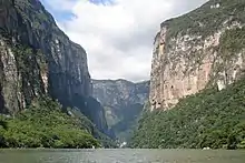 El estado mexicano de Chiapas ocupa el extremo sureste de México, sobre un área de 74,415 km². Hacia el oeste limita con los estados mexicanos de Oaxaca y Veracruz, al norte con Tabasco y al este con Guatemala. El límite sur consiste en 260 kilómetros (160 millas) de costa del Océano Pacífico.[2] Chiapas es geográfica y culturalmente diversa.[3] Cuenta con dos regiones montañosas principales: al sur se encuentra la Sierra Madre de Chiapas y en la zona central las Montañas Centrales. Están separadas por la Depresión Central, que contiene la cuenca de drenaje del río Grijalva.[4] Las tierras altas de la Sierra Madre ganan altitud de oeste a este, con las montañas más altas cerca de la frontera con Guatemala.[5]