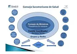 El Consejo Suramericano de Salud es un consejo ministerial de UNASUR, conformado por los ministros de Salud de los países miembros de la Unión de Naciones Sudamericanas. Se trata del segundo consejo emanado de este organismo después del de Defensa, La creación de este órgano, que tiene como objetivo promover políticas sanitarias comunes para todos los países de América del Sur,[1]se creó por decisión de Jefes de Estado y de Gobierno de la Unión de Naciones Suramericanas (UNASUR), reunidos extraordinariamente en Costa de Sauipe, Brasil, el 16 de diciembre de 2008.[2]