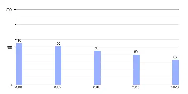Gráfica de evolución demográfica de Costante (aldea) entre 2000 y 2020 |