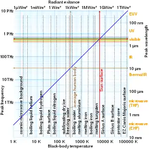La constante de Stefan-Boltzmann (también llamada constante de Stefan), una constante física simbolizada por la letra griega σ, es la constante de proporcionalidad en la ley de Stefan-Boltzmann, donde «la intensidad (física) total irradiada sobre todas las longitudes de onda se incrementa a medida que aumenta la temperatura» de un cuerpo negro que es proporcional a la cuarta potencia de la temperatura termodinámica.[1] La teoría de la radiación térmica establece la teoría de la mecánica cuántica, por medio del uso de la física para relacionarse con los niveles moleculares, atómicos y subatómicos. El físico esloveno Josef Stefan formuló la constante en 1879, y más tarde fue derivada en 1884 por el físico austriaco Ludwig Boltzmann.[2] La ecuación también se puede derivar de la ley de Planck, al integrar sobre todas las longitudes de onda a una temperatura dada representará un cuerpo negro como cajita plana.[3] «La cantidad de radiación térmica emitida aumenta rápidamente y la frecuencia principal de la radiación se hace mayor con el aumento de las temperaturas.»[4] La constante de Stefan-Boltzmann se puede utilizar para medir la cantidad de calor emitida por un cuerpo negro, el cual absorbe toda la energía radiante que le golpea, y emitirá posteriormente toda esa energía. Además, la constante de Stefan-Boltzmann permite a la temperatura (K) convertirse a unidades de intensidad (W/m²), que es la potencia por unidad de área.