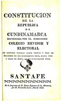- «Constitución de la República de Cundinamarca: reformada por el Serenísimo Colegio Revisor y Electoral». Banco de la República. Consultado el 17 de febrero de 2018.