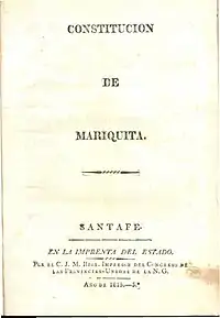 Constitución Política del Estado Libre de Mariquita de 1815 | ||