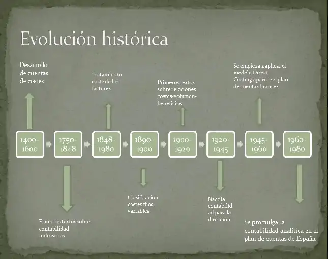 Según Sánchez Fernández de Valderrama(1988): el inicio y posterior evolución de esta rama de la disciplina contable se ha producido en función de los cambios en los objetivos y estructuras de las mismas empresas. [1]