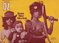 La revista Oz fue primeramente publicada como una revista satírica entre 1963 y 1969 en Sídney, Australia, y, en su más conocida segunda encarnación, se convirtió en una revista "hippie psicodélica" de 1967 a 1973 en Londres. Identificada como parte de la prensa clandestina, fue parte de dos juicios muy publicitados por obscenidad, uno en Australia en 1964 y otro en el Reino Unido en 1971.[71][72]