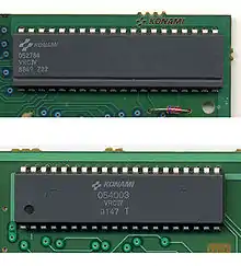 El VRC6 (Virtual Rom Controller) es un chip MMC avanzado de Konami, que admite selección de banco tanto para el código de programa como para los gráficos, así como un contador IRQ basado en ciclos de la CPU, que también puede actuar como un contador de líneas de exploración. El chip también contiene soporte para tres canales de sonido adicionales (dos ondas cuadradas de ocho ciclos de trabajo cada una y una onda de diente de sierra ). Se usa en Akumajō Densetsu (la versión japonesa de Castlevania III: Dracula's Curse ), mientras que la versión occidental usa el MMC5 de Nintendo. Dado que el Nintendo Entertainment System no permite que los cartuchos agreguen canales de sonido adicionales, la banda sonora de la versión de Famicom fue reelaborada para seguir esas especificaciones; por lo tanto, la banda sonora de la versión occidental se implementa mediante los cinco canales de sonido integrados en la NES estándar. [14]