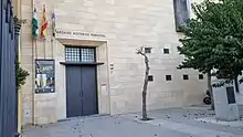 La sede del Archivo Histórico Municipal y Biblioteca Iberoamericana se sitúa anexa al Claustro. El edificio, de nueva planta, fue inaugurado el 12 de octubre de 1994, obra de los arquitectos José María Jiménez Ramón y Francisco Pinto Puerto, quienes fusionaron la nueva fábrica al claustro manierista de San Francisco del siglo XVI, logrando un equilibrado diálogo entre las partes sin tener que renunciar a la contemporaneidad y los fines a que iba y está destinado el edificio. El Archivo consta de 5 depósitos distribuidos en planta baja y en dos entreplantas, con un total de 171 m², con capacidad para documentación en estanterías convencionales, además de una sala de consulta e investigación, un área de trabajos técnicos y administrativos y una pequeña sala de exposiciones. La superficie total construida originalmente era de 425 metros cuadrados, sin embargo, en el año 2015, se amplió con un edificio contiguo del antiguo colegio Pedro Alonso Niño. Esta construcción anexa, de dos plantas, es utilizada en su planta alta como sala de exposiciones "América", mientras que en la planta baja se ubican dos nuevas salas de archivo administrativo.[4] El acceso al Archivo Histórico se hace desde la plaza de San Francisco a través del claustro subiendo la escalera principal que comunica con la zona abierta al usuario.