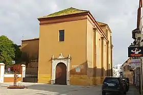 El claustro es un espacio manierista del último cuarto del siglo XVI, de planta sensiblemente cuadrada y adosado al muro norte de la iglesia. Está formado por dos plantas de arquerías sobre columnas, salvo en su lado norte donde sólo tiene la arquería inferior. En el patio se conserva un aljibe con restos de estuco pintado. La escalera ha recuperado su grandiosidad después de las distintas restauraciones. Se accede a ella a través de un vano con arco de medio punto adovelado, mayor que los huecos adintelados que aparecen a ambos lados. Esta solución responde a la tipología de «serliana» cuyo modelo introduce Hernán Ruiz en el primer cuerpo de campanas de la Giralda de Sevilla. Los tres arcos sobre columnas remarcados por un almohadillado del piso superior potencian la espacialidad de la escalera. En el primer tramo se conserva un trozo de estuco (siglo XVI) con motivos geométricos. El claustro es propiedad del Ayuntamiento tras la Desamortización española.