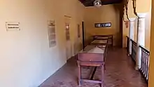 El contenido de la sala se complementa, en la Galería Santa Cecilia, con un apéndice exterior denominado "Moguer y Ultramar" que nos acerca a la intensa relación que la ciudad y sus marinos mantuvieron con el nuevo continente en los siglos posteriores. Fueron numerosos los marinos moguereños[6] que participaron en el descubrimiento, colonización y evangelización de las nuevas tierras, en los denominados Viajes menores o andaluces.