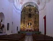 Su iconografía responde al ideal franciscano de la época. El crucificado que lo remataba y las imágenes policromadas de los dos santos franciscanos, que antaño flanqueaban el camarín de la titular, fueron destruidos en el año 1936. El resto de la imaginería se ha conservado. San Francisco de Asís obra de León Ortega de 1963.