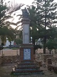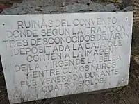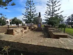![]() Ruinas del Convento de Santa María La Bella con el monumento conmemorativo de 1985 ubicado en el centro. | ||