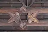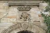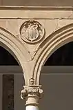 - Relieves sobre la puerta oeste con el emblema de los dominicos, la cruz de los lirios, rodeada por el lema de la Orden Laudare, benedicere, praedicare / Alabar, bendecir, predicar. Sobre ella se puede ver el relieve de un águila coronada. A la izquierda se muestra un rosario que según la leyenda santo Domingo recibió en una aparición mariana; a la derecha hay un libro abierto con el lema Summa Divi Thomae, la Suma teológica de Tomás de Aquino.