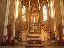 La iglesia nueva es de estilo neogótico, de una nave con cinco capillas laterales y coro sobre el acceso. Interiormente es construcción de bastante elevación, toda de mampostería y ladrillo. En la capilla quinta del lado del Evangelio existe, sin embargo, un arco de sillería de traza gótica embutido en el muro, que pudiera ser uno de los escasos restos de las construcciones primitivas del convento.