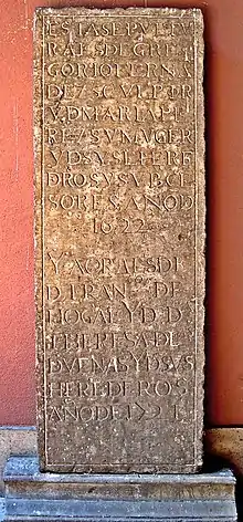 Cuando los religiosos llegaron a Valladolid en 1551 con la intención de fundar un monasterio se albergaron en una casa de recreo que les cedió su propietario Bernardino de Mendoza. Esta casa estaba en la zona conocida como Río Olmos.[lower-alpha 1] Pero el sitio resultaba insalubre y también un poco alejado de la villa por lo que los frailes tomaron la decisión de buscar un mejor acomodo. Lo encontraron en unas casas cedidas por Juan Alvarado, patrono del convento; estaban dichas casas en la zona sur del ejido concejil y allí estuvieron hasta que pudieron ir construyendo el definitivo convento cuya fábrica se atribuye a Francisco de Praves.[2]