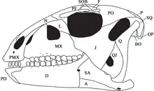 Otros rasgos son caracteres derivados, que indican una posición más alta en el árbol evolutivo. Las raíces de los dientes maxilares son curvas. Las vértebras del cuello son opistocélicas, convexas en la parte frontal y cóncavas en la parte posterior. En las vértebras sacras, las espinas neurales tienen el doble de la altura del cuerpo vertebral. El extremo posterior del isquion se expande en un "pie". Entre los frentes de los cóndilos del hueso del muslo o fémur solo hay un surco superficial. El proceso prepúbico del hueso púbico se aplana transversalmente.[1]