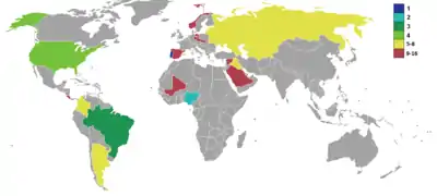Los 16 equipos fueron posteriormente separados en cuatro grupos. En cursiva, los equipos debutantes.