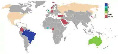 Además del anfitrión Australia, 15 equipos clasificaron a la fase final del torneo a través de los torneos realizados por cada uno de las restantes seis confederaciones.