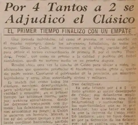 Diario "El Orden" destacaba el triunfo sabalero conseguido el 30 de diciembre de 1950