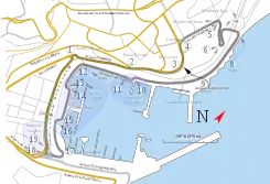 Se muestra la pista con las calles locales. Esta variante utiliza las esquinas 12 a 17