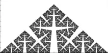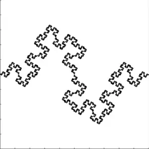 Variante de la curva de Koch con ángulo de 90°. Dimensión de Hausdorff: 1,5.