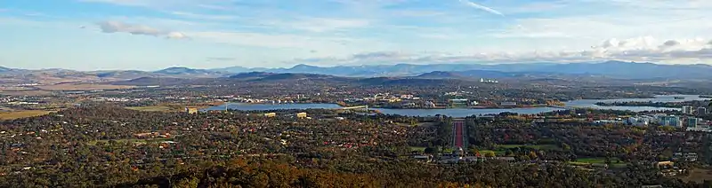 Los campos de esquí más al norte de Australia se encuentran en Brindabella e incluyen el parque nacional Namadgi en el TCA y la Reserva Natural Bimberi y el parque nacional Brindabella en Nueva Gales del Sur. La montaña más alta del TCA es Bimberi Peak, que se encuentra por encima de la línea de árboles a 1912 metros (2091,0 yd), en el extremo norte de las Montañas Snowy.[8]