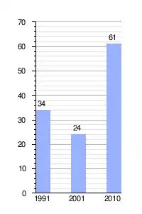 Gráfica de evolución demográfica de Cordobita entre 1991 y 2010 |