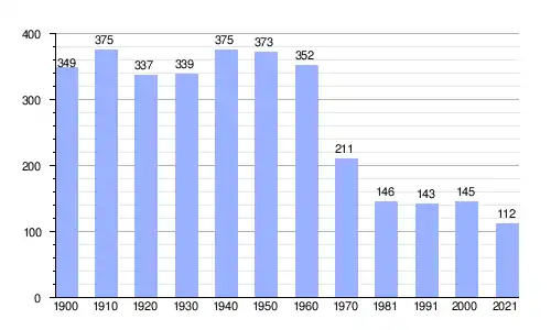 Gráfica de evolución demográfica de Cordovilla entre 1900 y 2021 |
