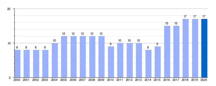 Gráfica de evolución demográfica de Cordovilla de Aguilar entre 2000 y 2020 |