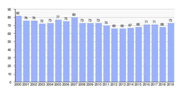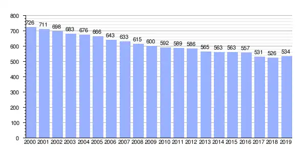 Gráfica de evolución demográfica de Cores (lugar) entre 2000 y 2019 |