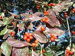![]() Sanguiñuelo florido en otoño con su fruto. | ||