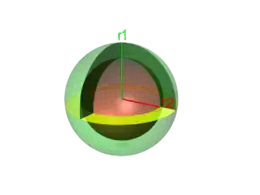 Representación de una corona esférica, que corresponde a la cáscara de color verde.