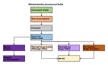 Las corporaciones municipales están reguladas de forma general por una enmienda constitucional de 1993, aunque la definición de sus límites y la concreción de su forma de gobierno depende de cada estado. Son siempre una subdivisión de los distritos, pudiendo estar subordinados a un tehsil o equivalente subdistrital o estar directamente subordinados al distrito, ya que se crean normalmente mediante la fusión de uno o más municipios con otras entidades locales colindantes. Las ciudades organizadas en corporación se organizan en circunscripciones llamadas ward, cada una de las cuales elige un representante en el órgano corporativo. Algunas ciudades reservan además asientos en el órgano a las castas registradas y tribus registradas, a mujeres o a otros grupos localmente desfavorecidos. Los estados pueden crear órganos adicionales de gobierno local junto al órgano corporativo ordinario.[2][3]