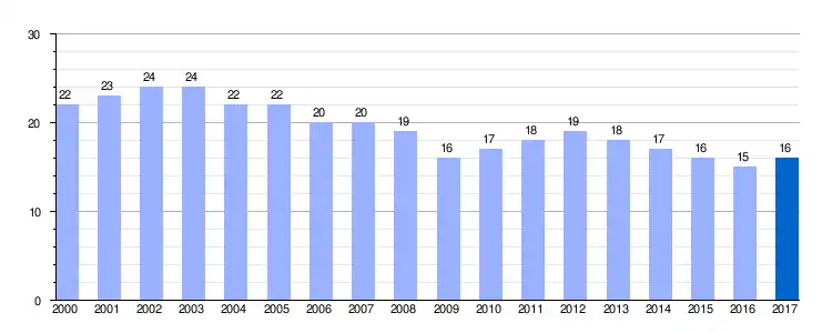Gráfica de evolución demográfica de Corralejo de Valdelucio entre 2000 y 2017 |