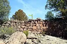 Asimismo, en la parte baja del conjunto inferior hay un gran muro de piedra rodena (mampostería encarada sin aglomerante), identificado como «muro defensivo», y sin relación con las construcciones actuales: ello hace pensar que sirvió a fábricas anteriores.